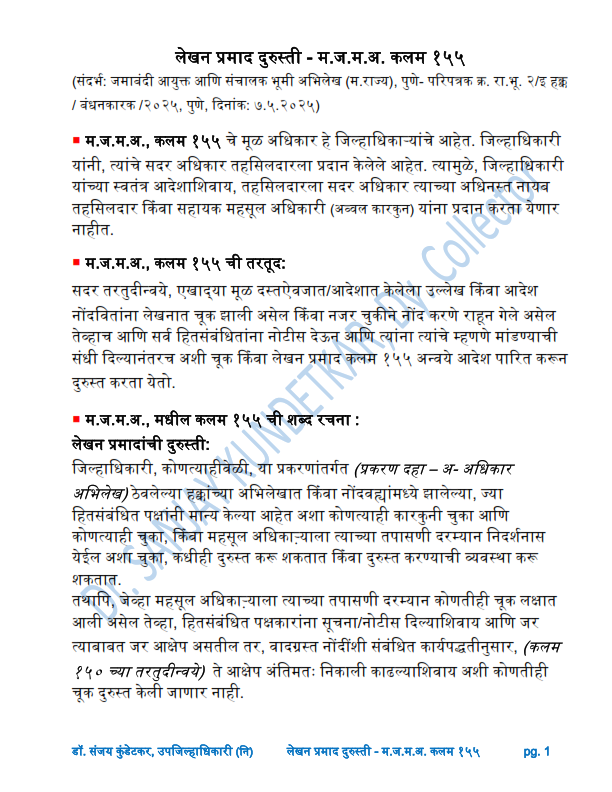 369. लेखन प्रमाद दुरुस्ती म ज म अ कलम १५५