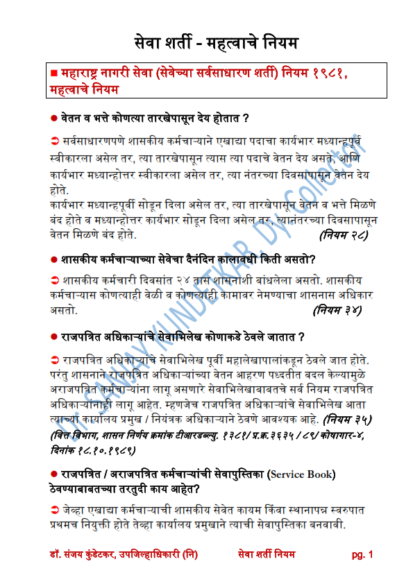 372. सेवा शर्ती महत्वाचे नियम