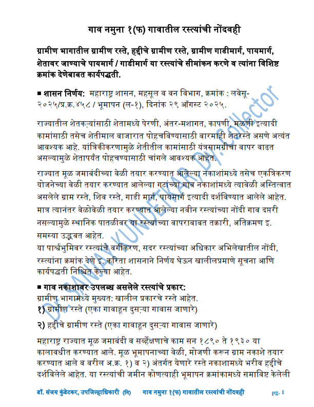 373. गाव नमुना १फ गावातील रस्त्यांची नोंदवही