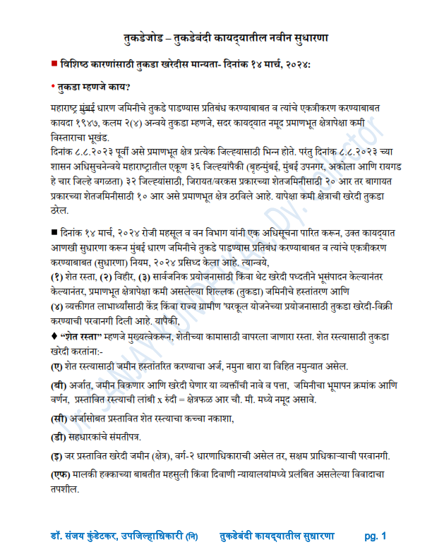 383. तुकडेबंदी कायद्यातील नवीन सुधारणा