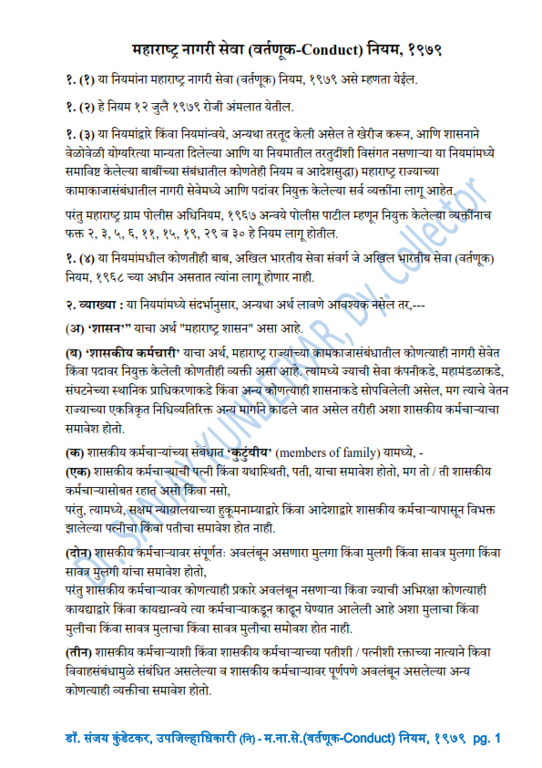 384. महाराष्ट्र नागरी सेवा वर्तणूक Conduct नियम, १९७९